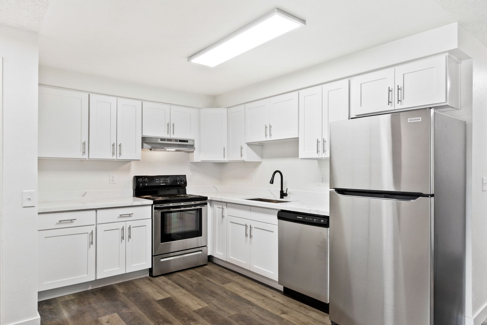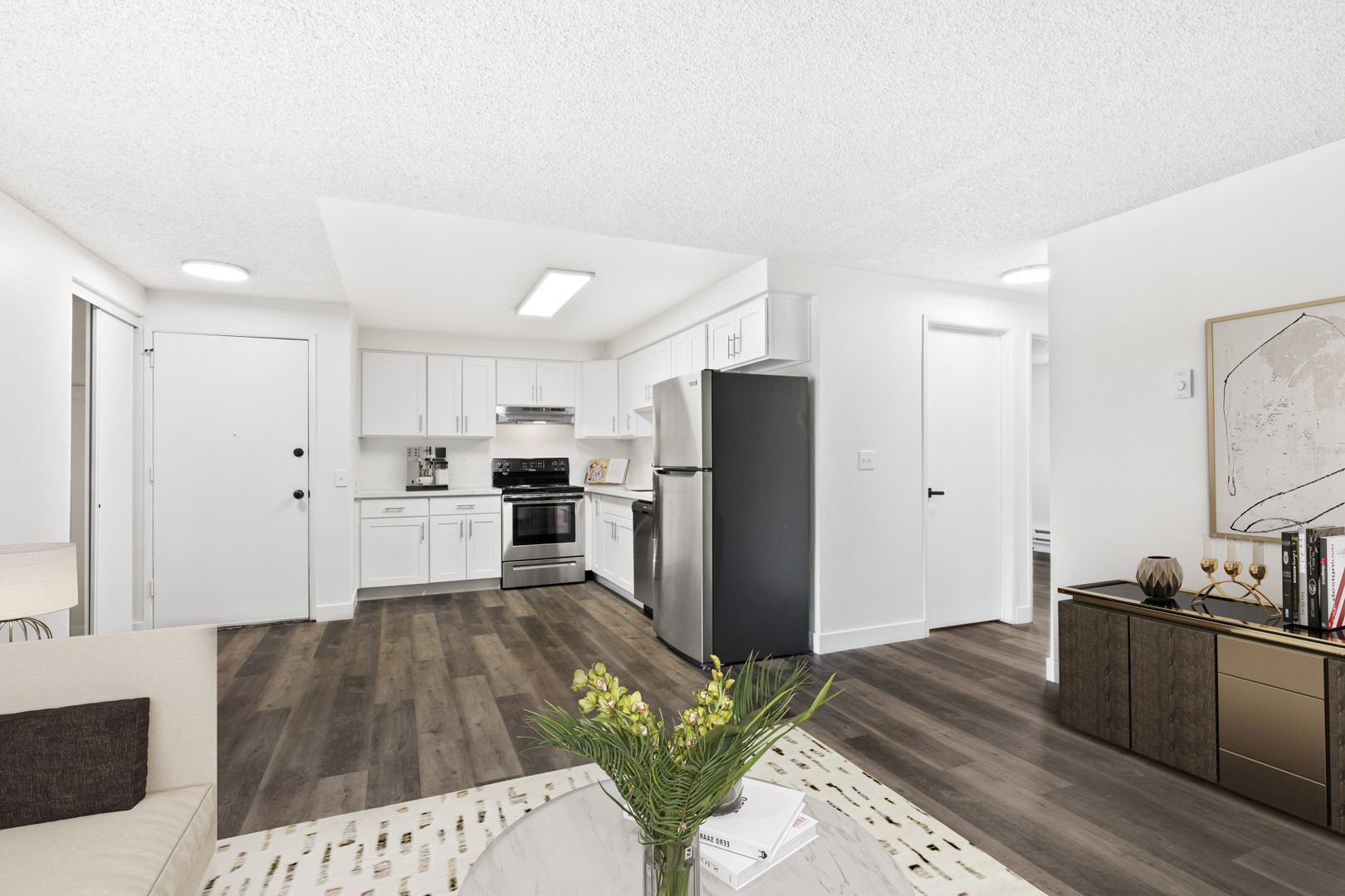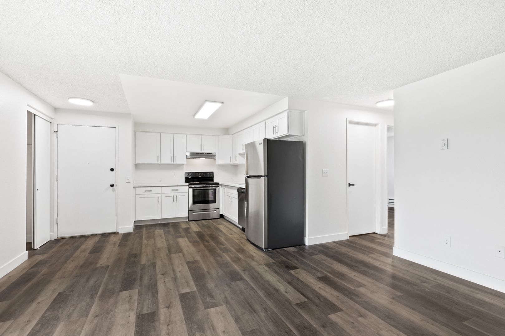This unit has 2-bedrooms and 1-bathroom. The renovated interior is designed with comfort and style in mind, boasting hardwood-like Luxury Vinyl Plank (LVP) flooring throughout, stainless steel appliances, and an in-unit washer & dryer.