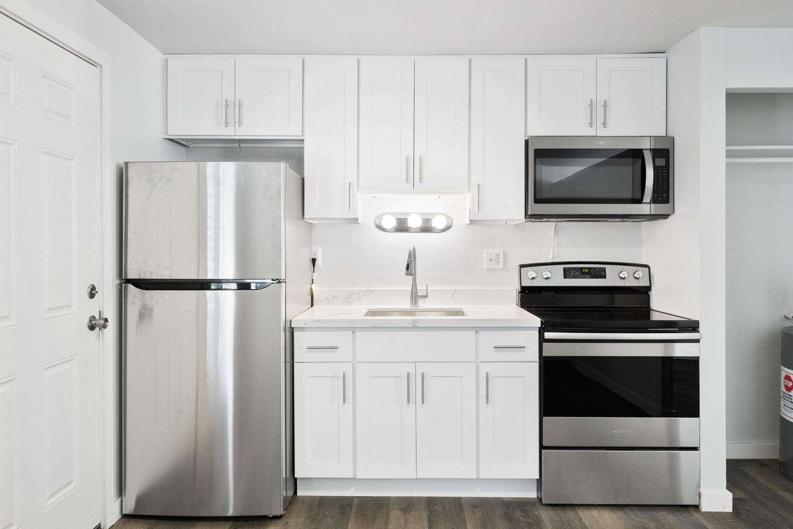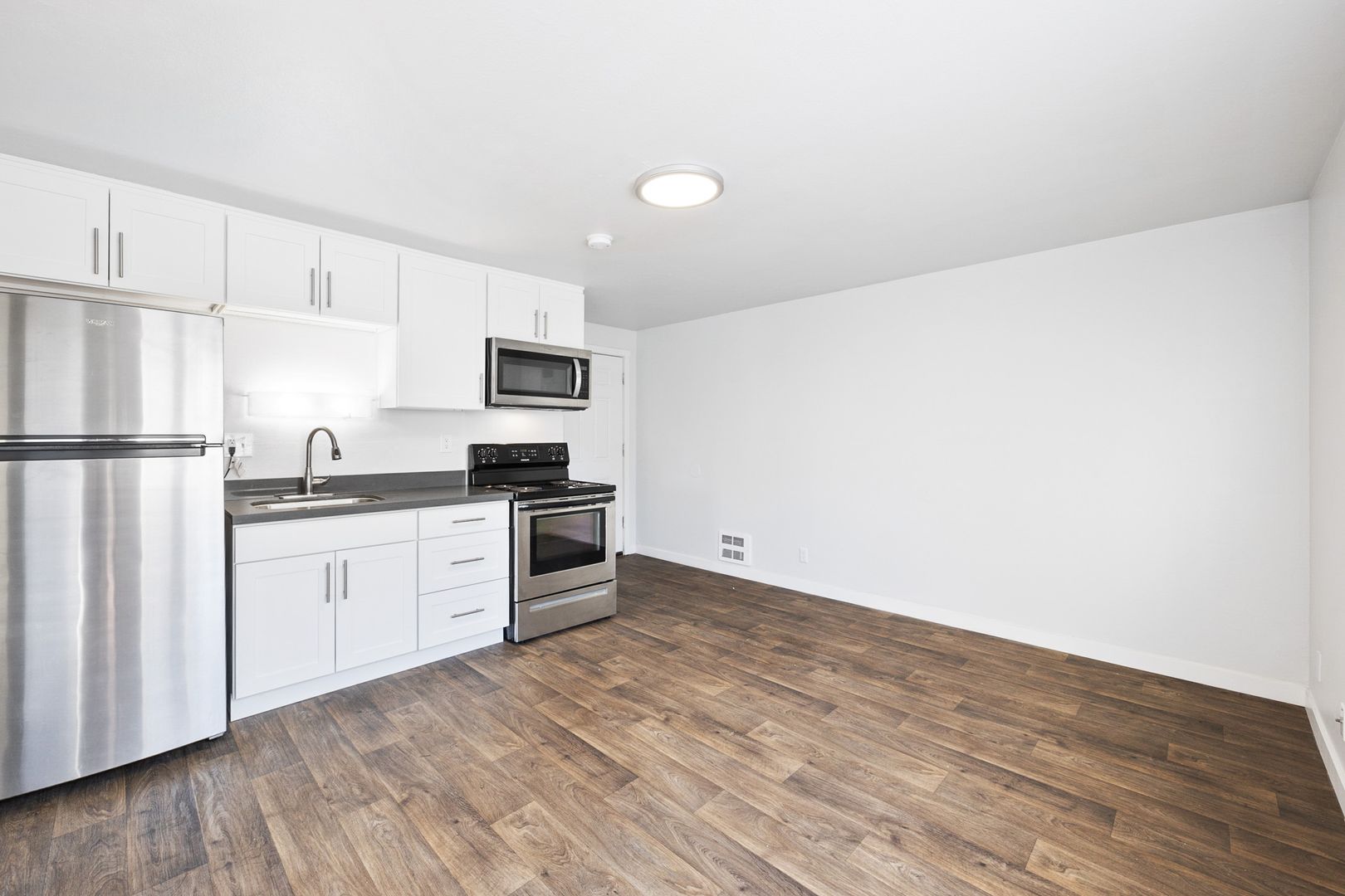 Flats at Delridge is a 16-unit apartment community in the highly sought-after Delridge neighborhood in West Seattle. All apartments are fully renovated and are oversized studios with half-walls separating the living and sleeping spaces. Apartments are characterized by Luxury Vinyl Plank flooring throughout, white shaker-style cabinets, quartz countertops, and fresh paint.